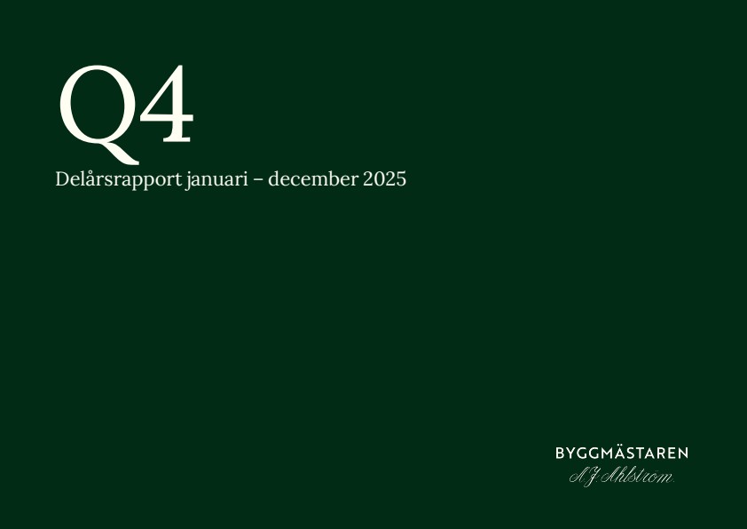 Byggmästare Anders J Ahlström Holding AB (publ) (“Byggmästaren”) publicerar idag kvartalsrapport för det fjärde kvartalet 2025.
