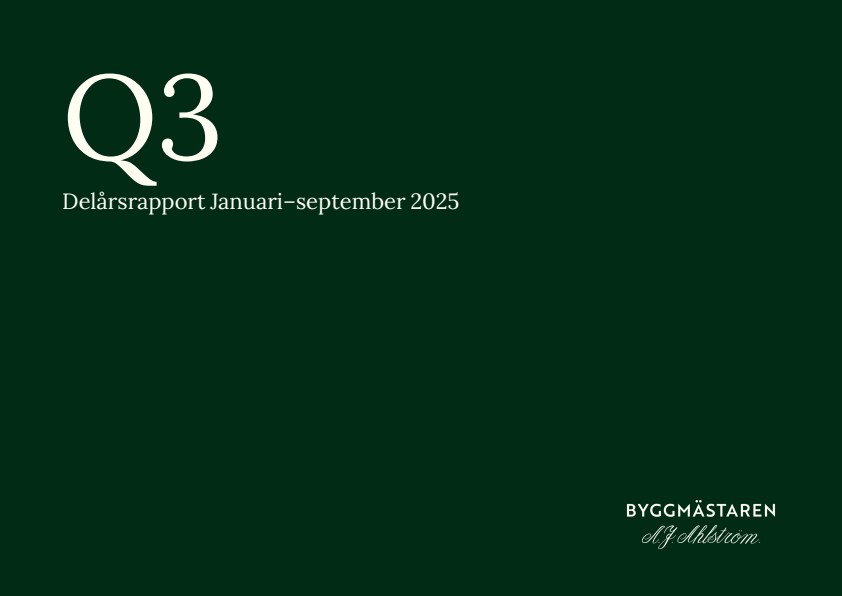 Byggmästare Anders J Ahlström Holding AB (publ) publicerar idag delårsrapport för tredje kvartalet 2025.