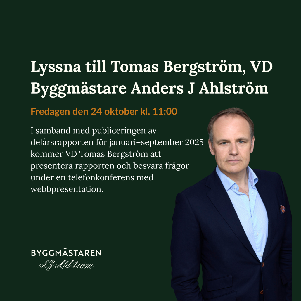 Inbjudan till presentation i samband med Byggmästarens delårsrapport januari–september 2025